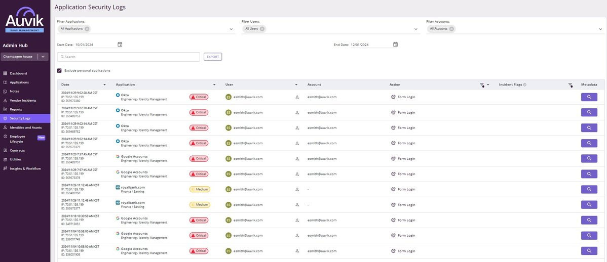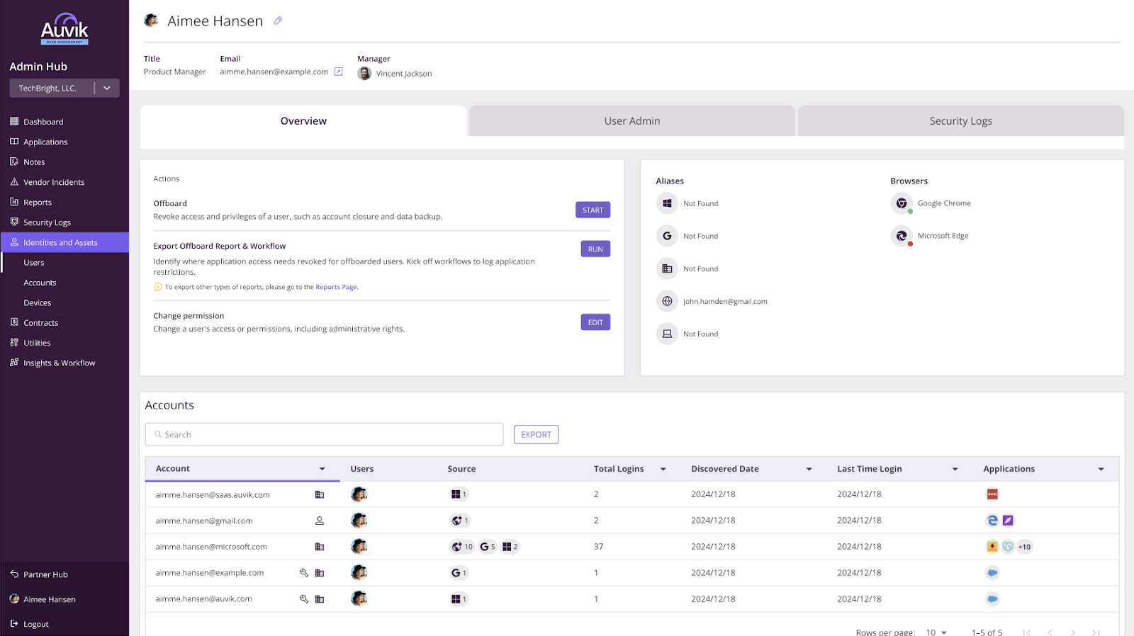 Auvik SaaS Management’s SaaS tracking capabilities provide detailed, real-world data on actual user activity so that organizations can make informed decisions and understand the areas of risk and waste that are most applicable to their business. Additionally, SaaS Ops integrations provide users with control over user lifecycle management from a single dashboard.