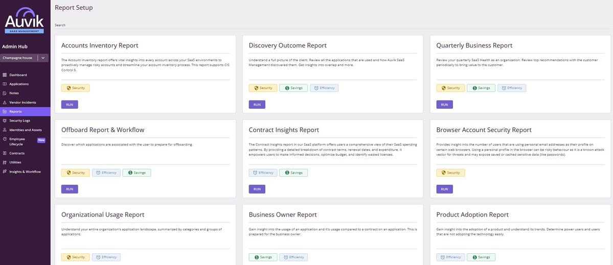 On average, organizations use 125 SaaS apps, all with varying security configurations, licensing models, renewal schedules, and levels of user adoption. Auvik SaaS Management’s reporting capabilities empower organizations to roll-up actionable business insights about their SaaS environment from a single dashboard.